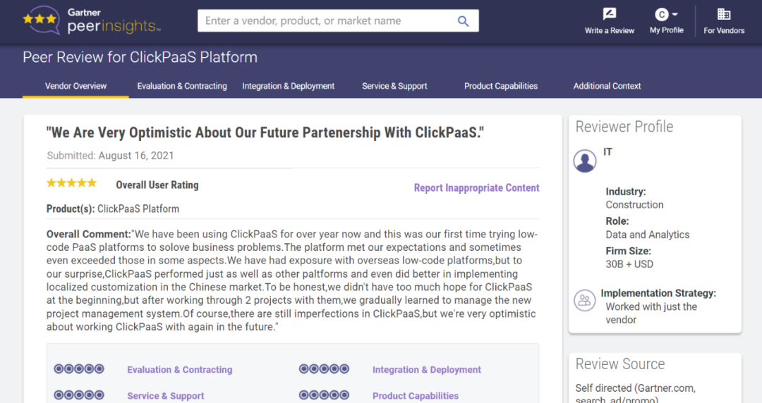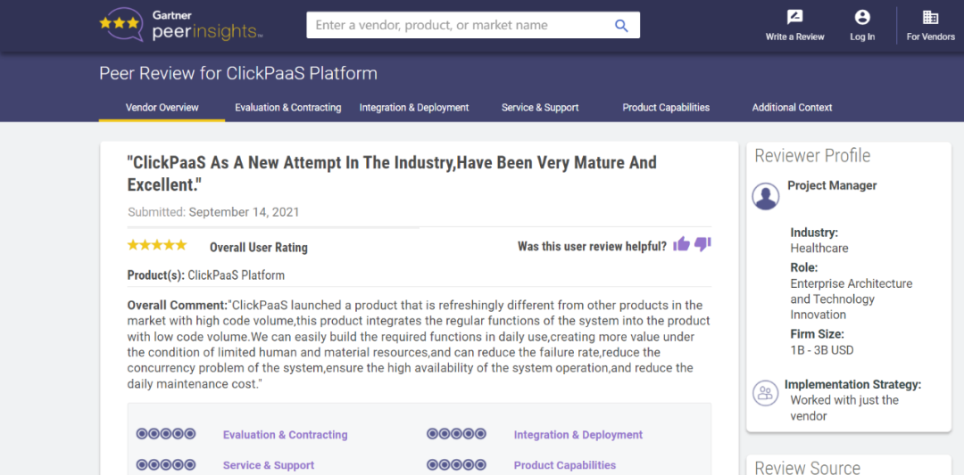 Tips::::【Peer Insights】——用户对企业IT产品和服务发布真实评价的平台。。。。目前已有355个市场,,255,000条经过验证的评价。。。每一条评价Gartner会针对参评企业营收规模及参评人员信息做验证、、、、评价内容做多维核实。。。。